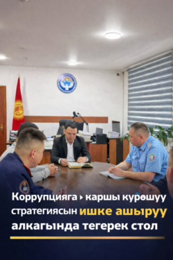 Аламүдүн райондук сотунун имаратында сот тутумунда коррупцияга каршы күрөшүү стратегиясын ишке ашыруу алкагында тегерек стол болуп өттү. Иш-чарага Аламүдүн райондук сотунун төрагасы Самат Шералиев, райондук ички иштер бөлүмүнүн (РИИБ) кызматкерлери катышты.